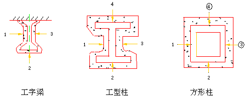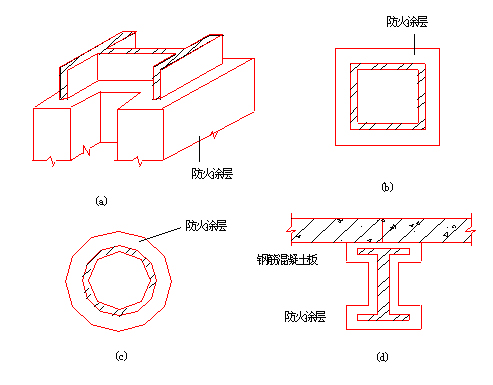(a)工字型柱的保護;(b)方型柱的保護;(c)管型構(gòu)件的保